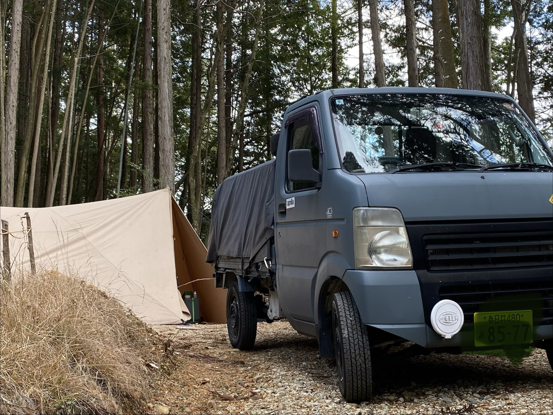 キャンプ用に作られた軽トラ🛻は、後ろにキャンプ用品が沢山乗せれるように工夫してありました