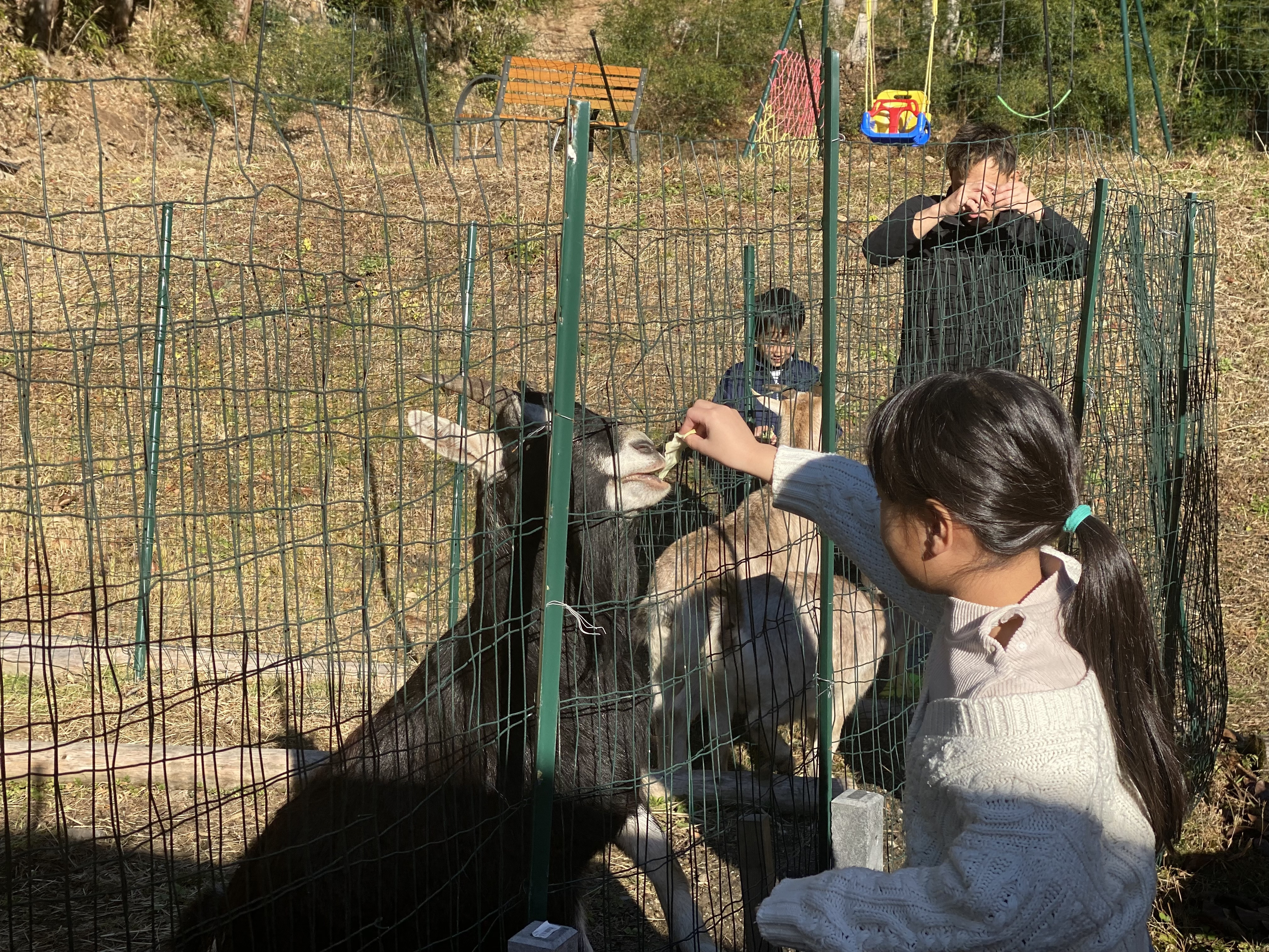なかなかヤギさんに 餌を手渡しであげれるところはないと思います