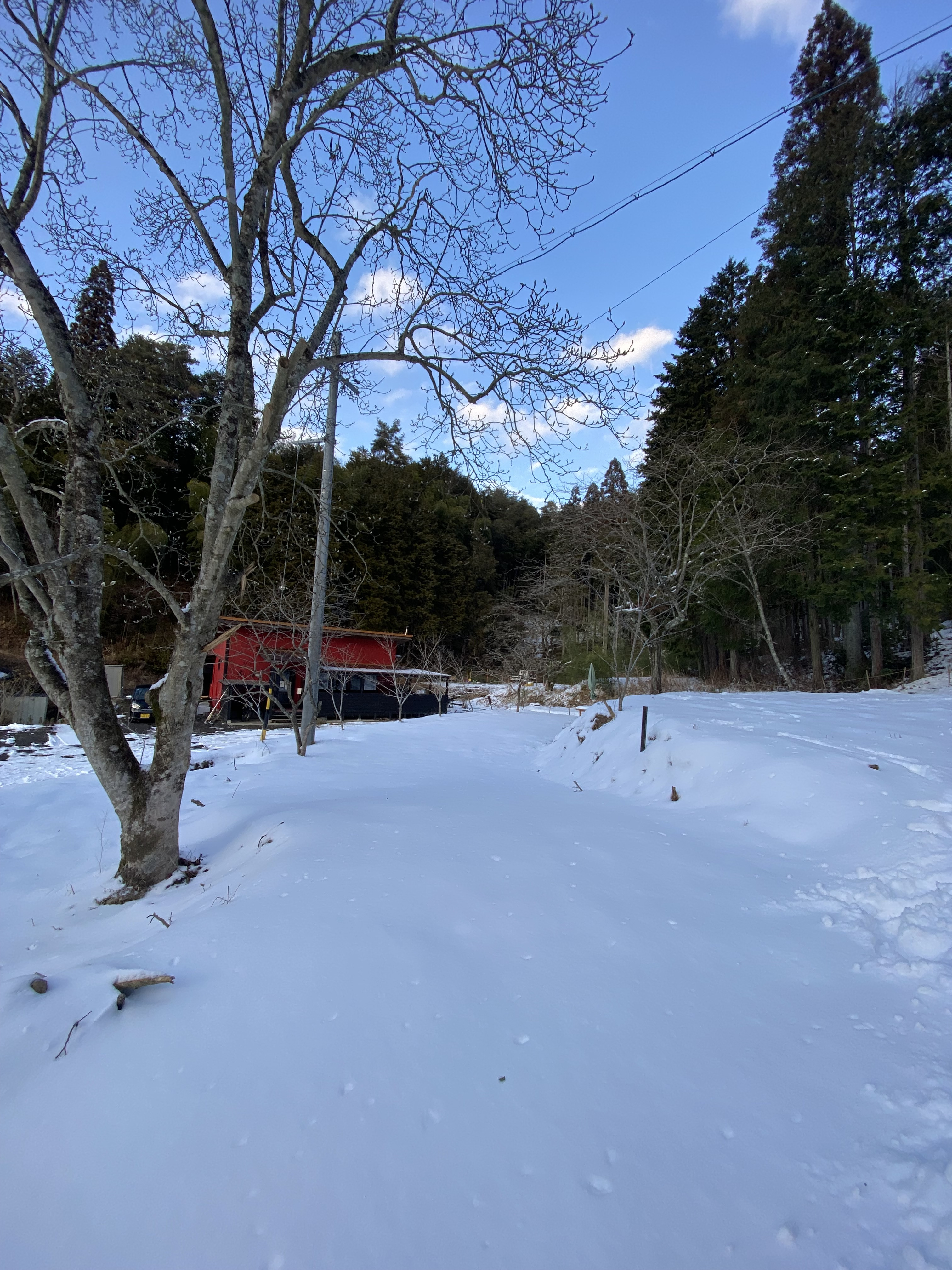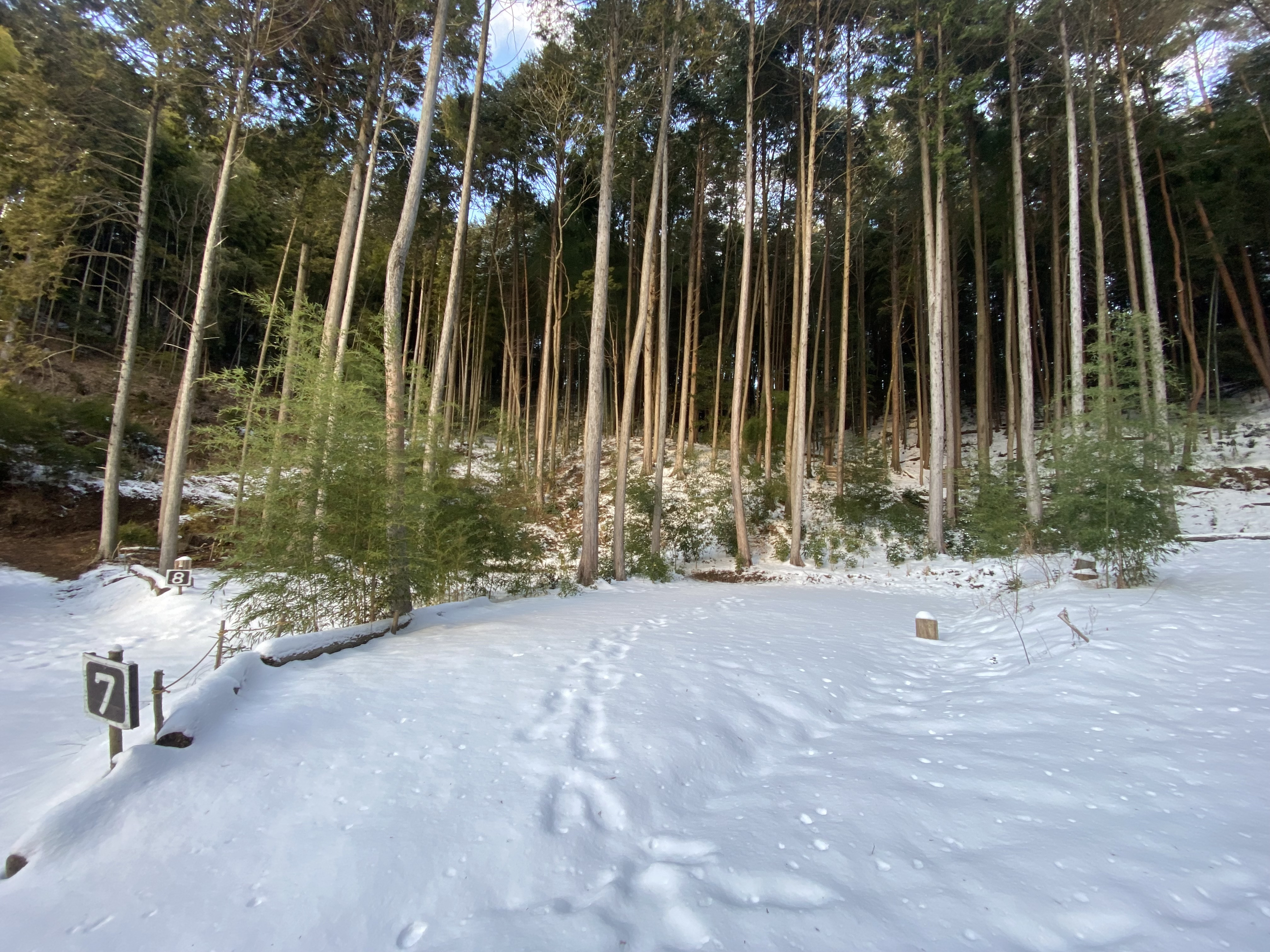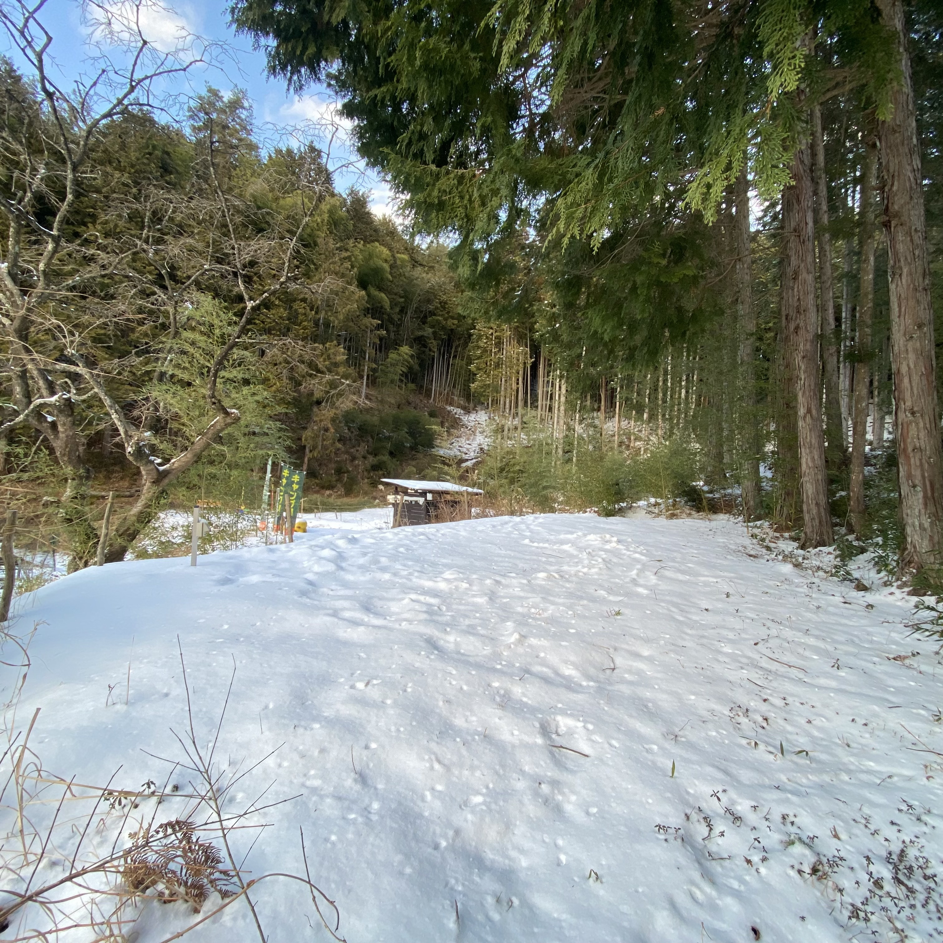 今日の木蓮キャンプ場はこんな感じに雪があります
