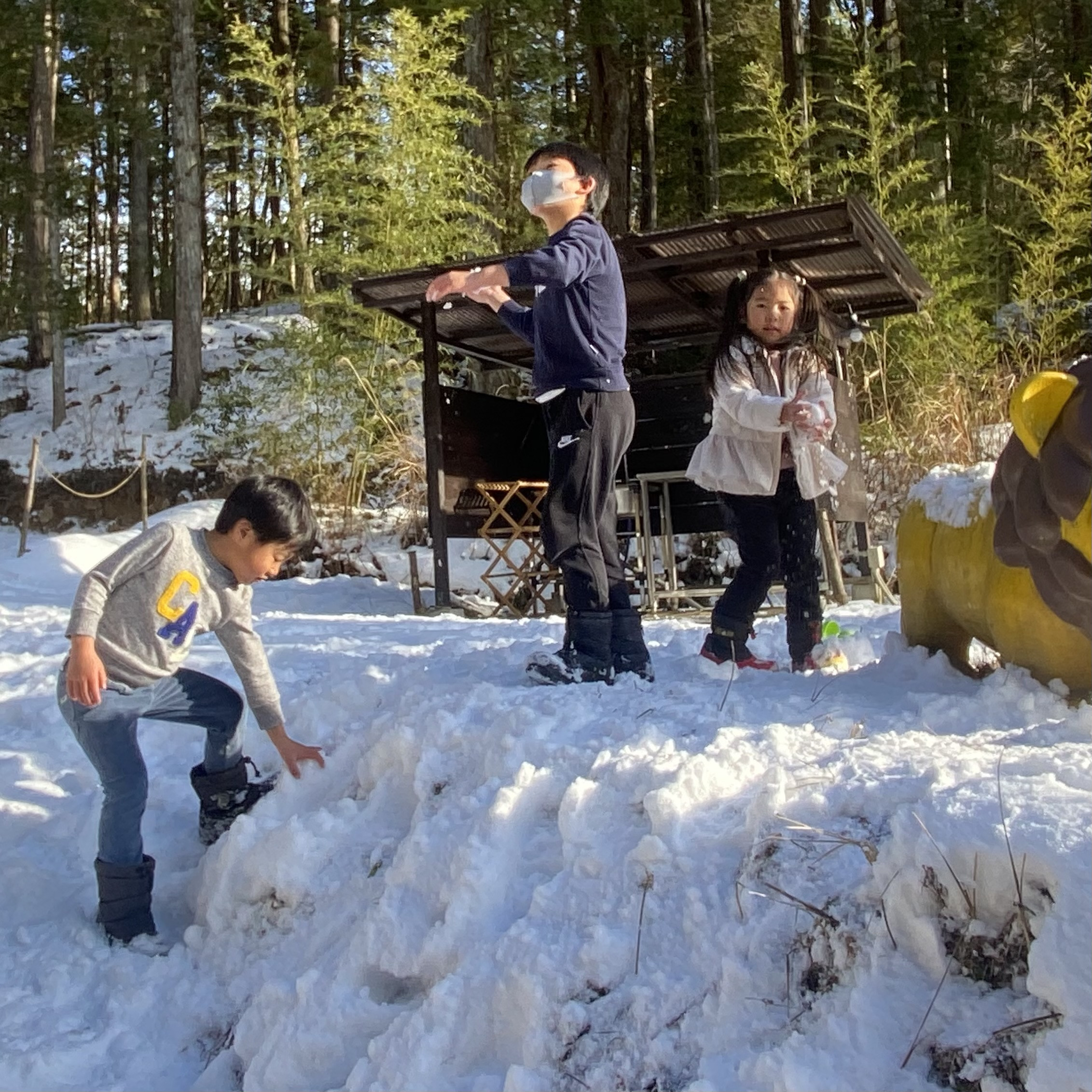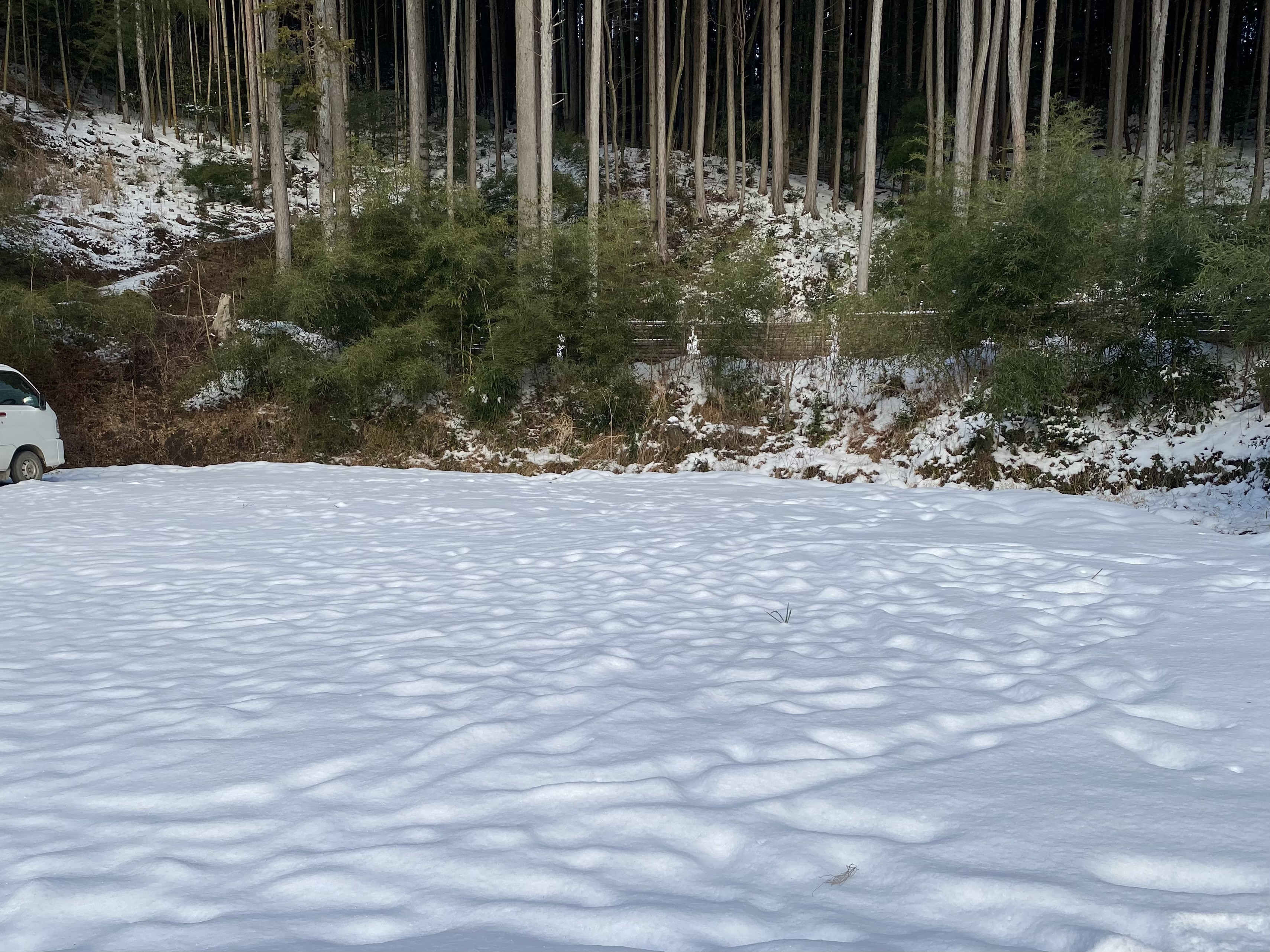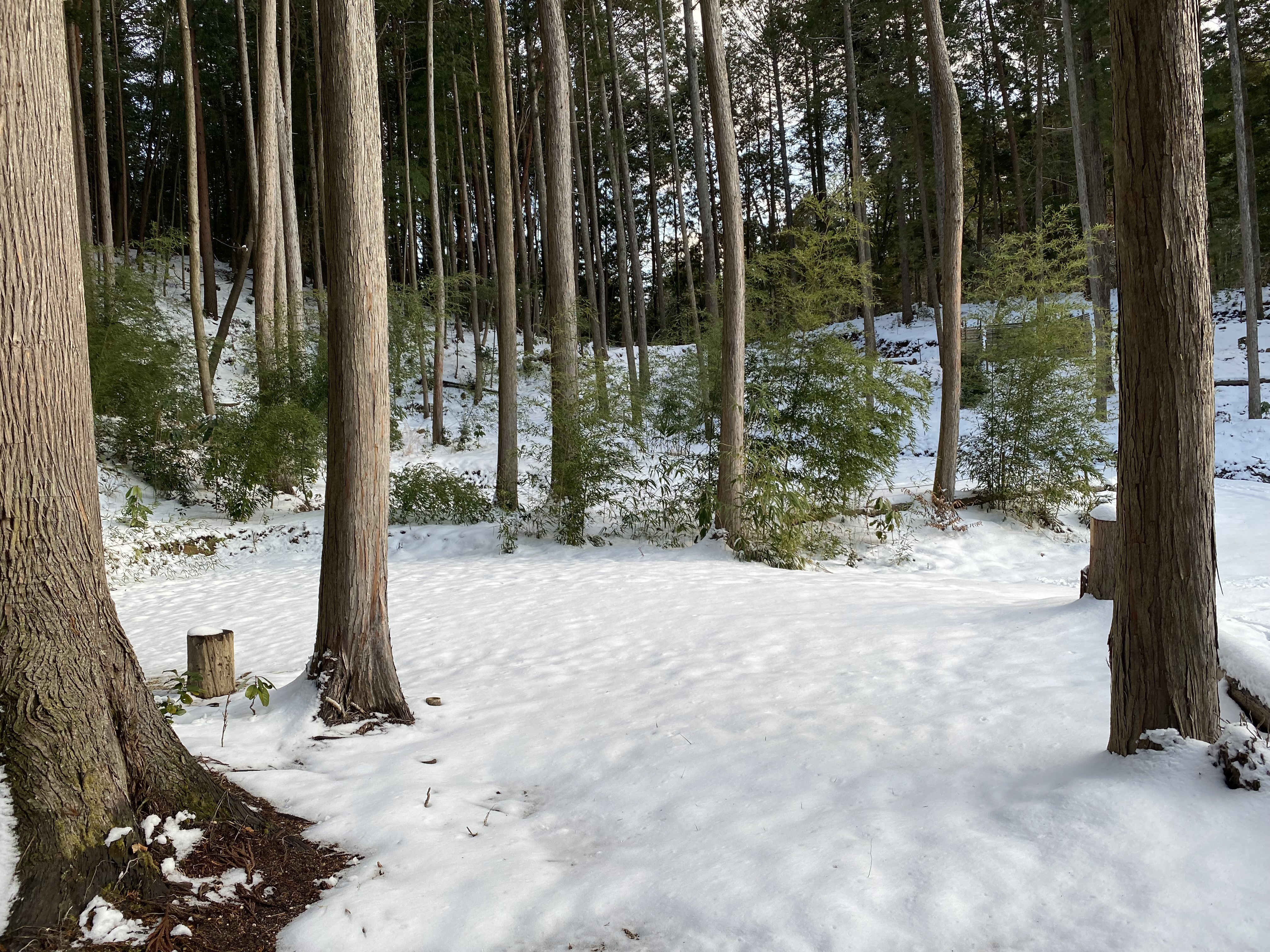 今日の木蓮キャンプ場はこんな感じに雪があります